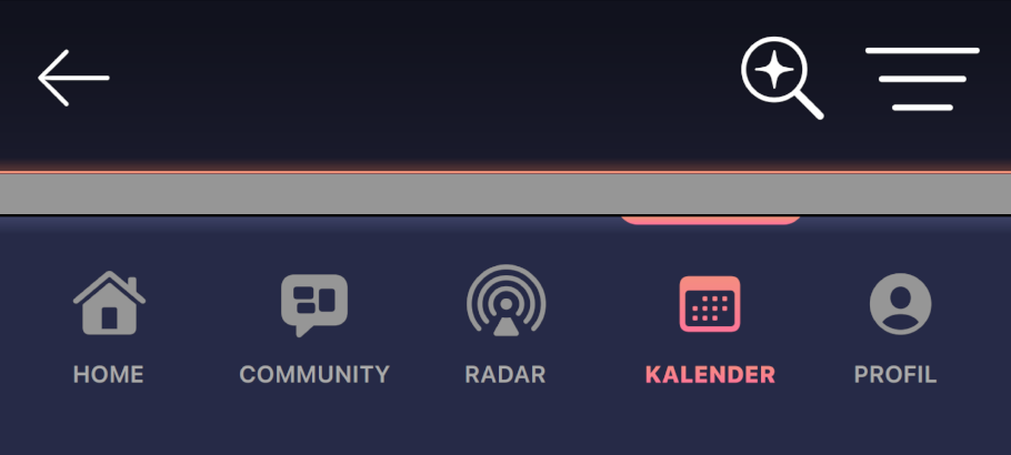 Die Funktionen von Kalender und Radar sind der "unique selling point" meiner App. Also das, was die App von anderen Angeboten wie z. B. Facebook abhebt. Beides soll intuitiv zu bedienen sein und auf unnötige Funktionen verzichten, die vom Kern der Anwendung ablenken könnten.